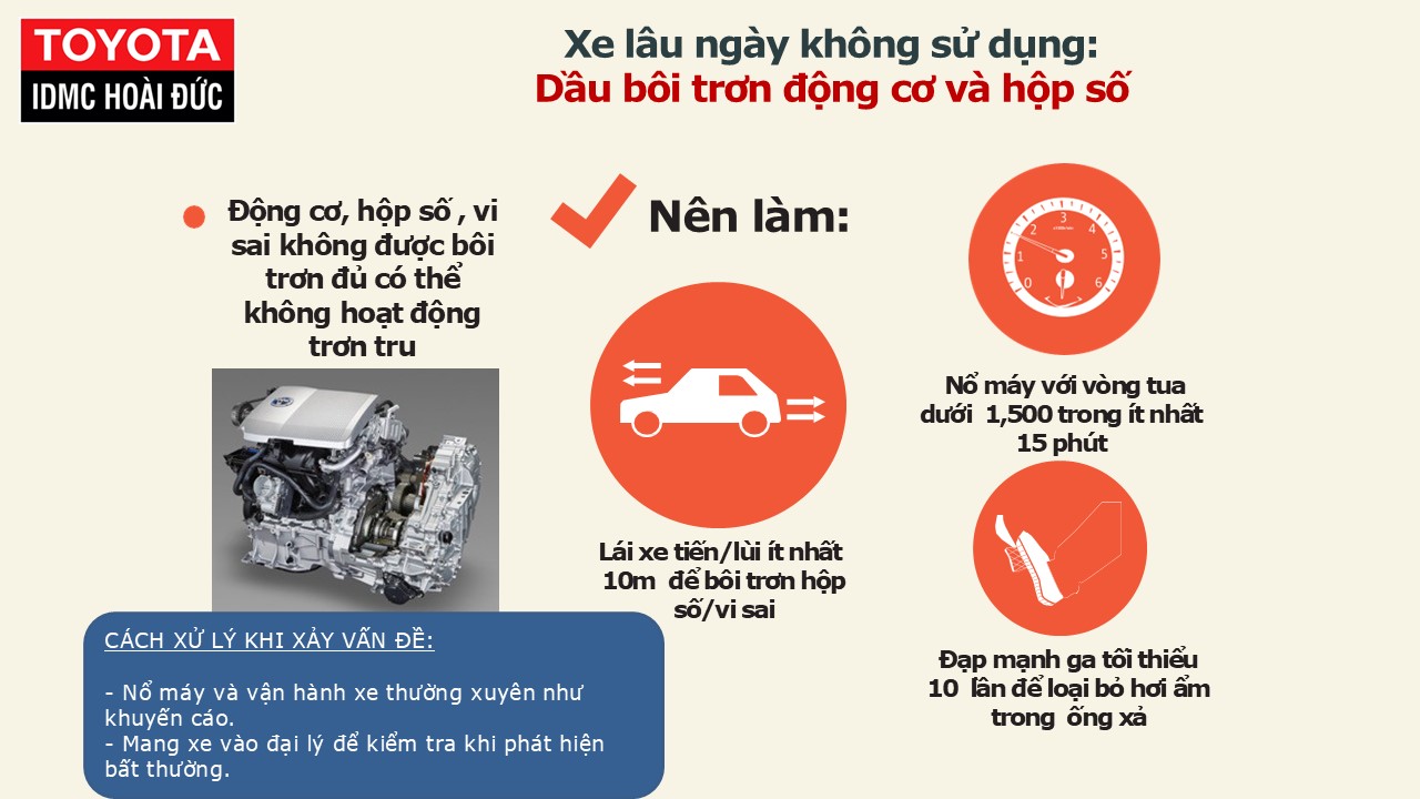 Để xế yêu luôn khỏe mạnh, Toyota Hoài Đức gửi đến quý Khách hàng những nguy cơ xế cưng gặp phải nếu không thường xuyên vận hành hoặc không đi lâu ngày: