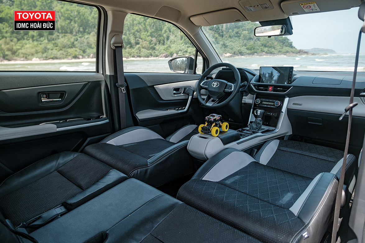 Toyota Veloz có hàng ghế trước, ghế lái chỉnh cơ 6 hướng & ghế phụ chỉnh cơ 4 hướng. Hàng ghế thứ hai có tựa tay mang lại cảm giác thoải mái & thư giãn. Veloz đa dụng với khoảng cách giữa hàng ghế một và hai rộng nhất phân khúc lên đến 980mm. Từ trần xe đến chỗ để chân đánh giá chung là có khoảng cách hợp lý.