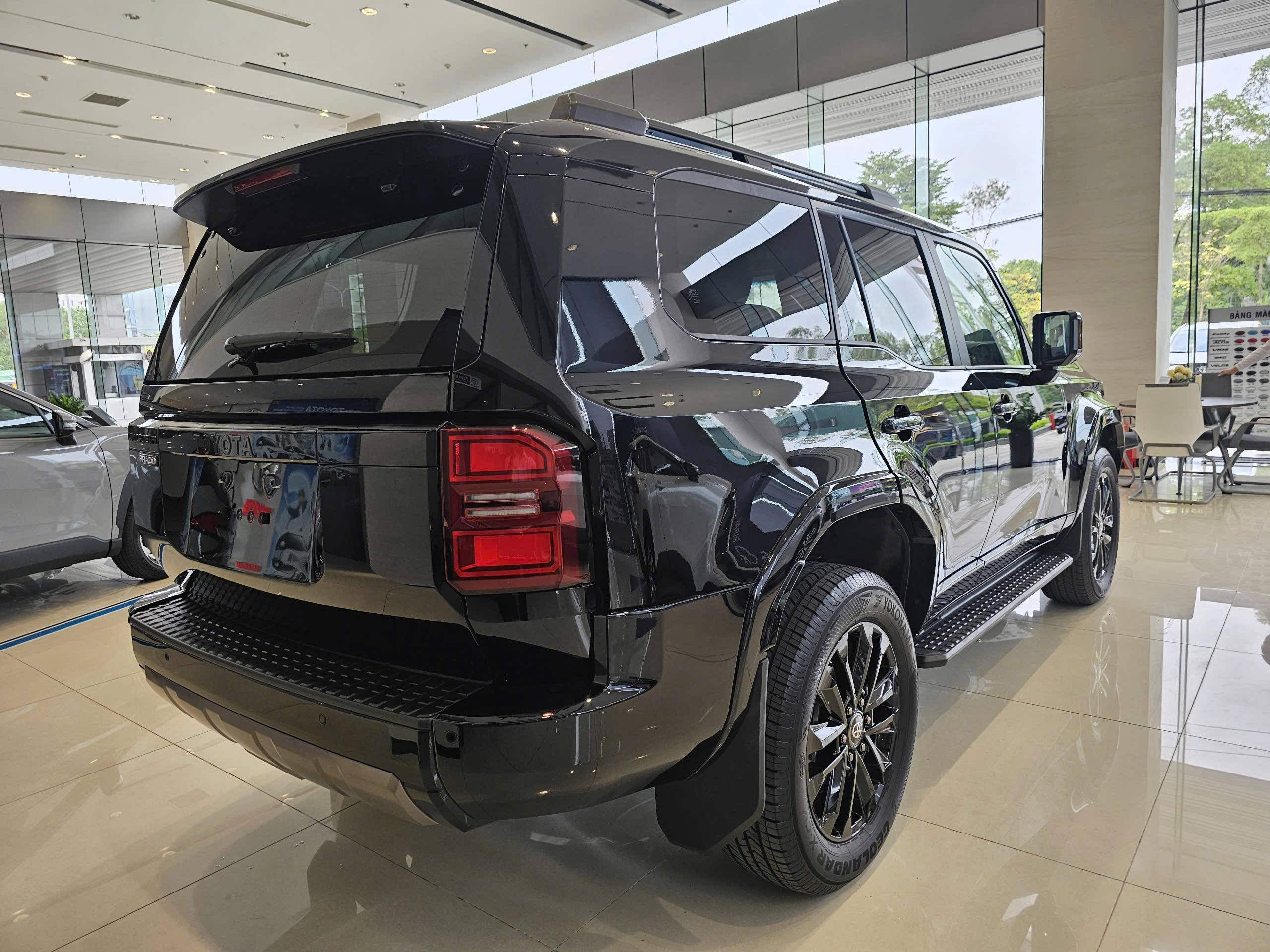 Phần đuôi xe của Toyota Land Cruiser Prado 2024 được thiết kế mạnh mẽ với các đường gân sắc nét và cụm đèn hậu LED, tăng tính thẩm mỹ và dễ dàng nhận diện từ xa. Đèn báo phanh trên cao cũng được tích hợp công nghệ LED, giúp đảm bảo an toàn khi dừng xe. Prado 2024 được trang bị lốp dự phòng kích thước 265/60R20 và mâm xe 20 inch đa chấu, tạo thêm nét thể thao, khỏe khoắn và tăng tính ổn định khi di chuyển.
