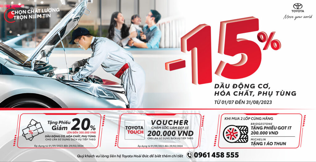 Bắt đầu ngày 15/08 Toyota Hoài Đức xin gửi đến tất cả quý khách hàng quan tâm dịch vụ sửa chữa/