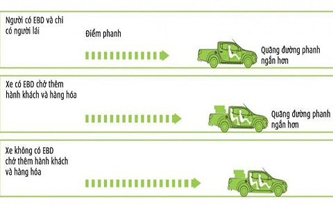 Một lời khuyên quý giá dành cho các tài xế là khi chở thêm hành lý trong xe, nên đặt các vật nặng ở giữa, tránh để lệch về bên trái hoặc phải và tất cả đều phải cố định vào xe. Việc làm này sẽ khiến hệ thống EBD hoạt động hiệu quả hơn và nếu không may xảy ra sự cố, bạn cũng sẽ hạn chế được nguy hiểm.