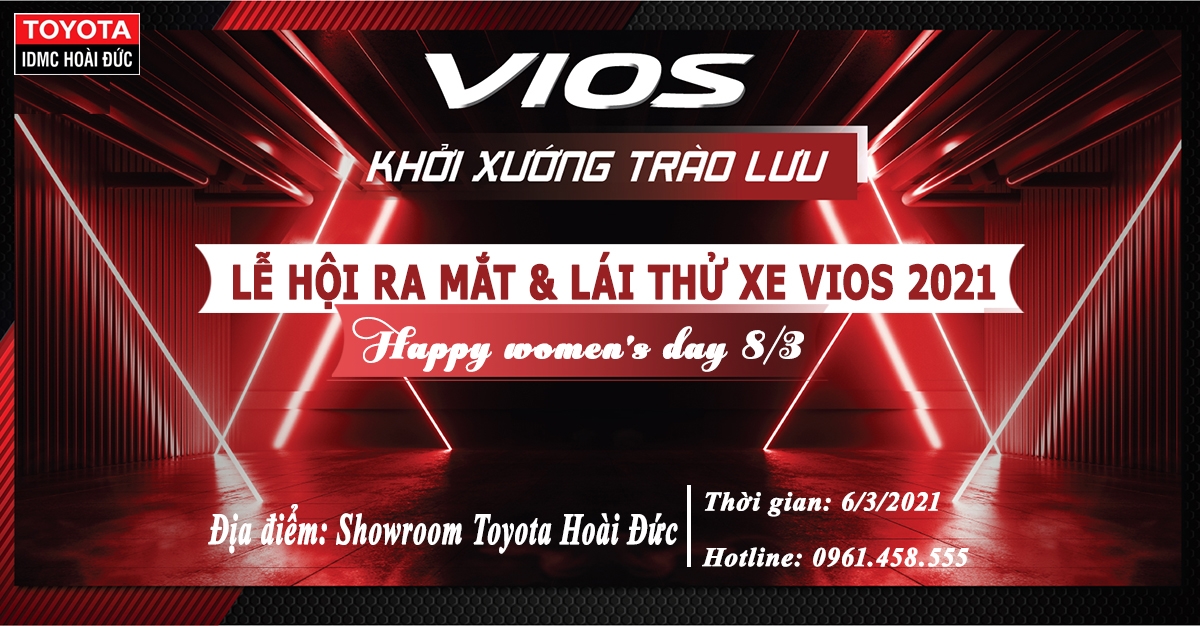 Sau một thời gian chờ đợi nhà Toyota đã cho ra mắt dòng xe Vios 2021, do vậy Toyota Hoài Đức vui mừng thông báo tổ chức chương LỄ HỘI TRƯNG BÀY VÀ LÁI THỬ XE VIOS 2021 để quý khách hàng có thể trải nghiệm chân thực nhất về dòng xe được chờ đón nhất năm này và trải nghiệm thêm các mẫu xe mới nhất tại Đại lý vào các thứ 7, ngày 6/3/2021.