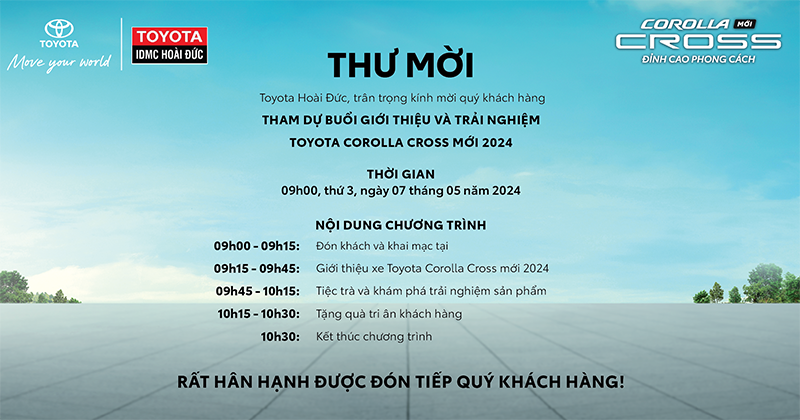 Kính mời quý khách hàng đến Toyota Hoài Đức tham dự sự kiện, trải nghiệm các dòng xe mới nhất và nhận các quà tặng hấp dẫn: