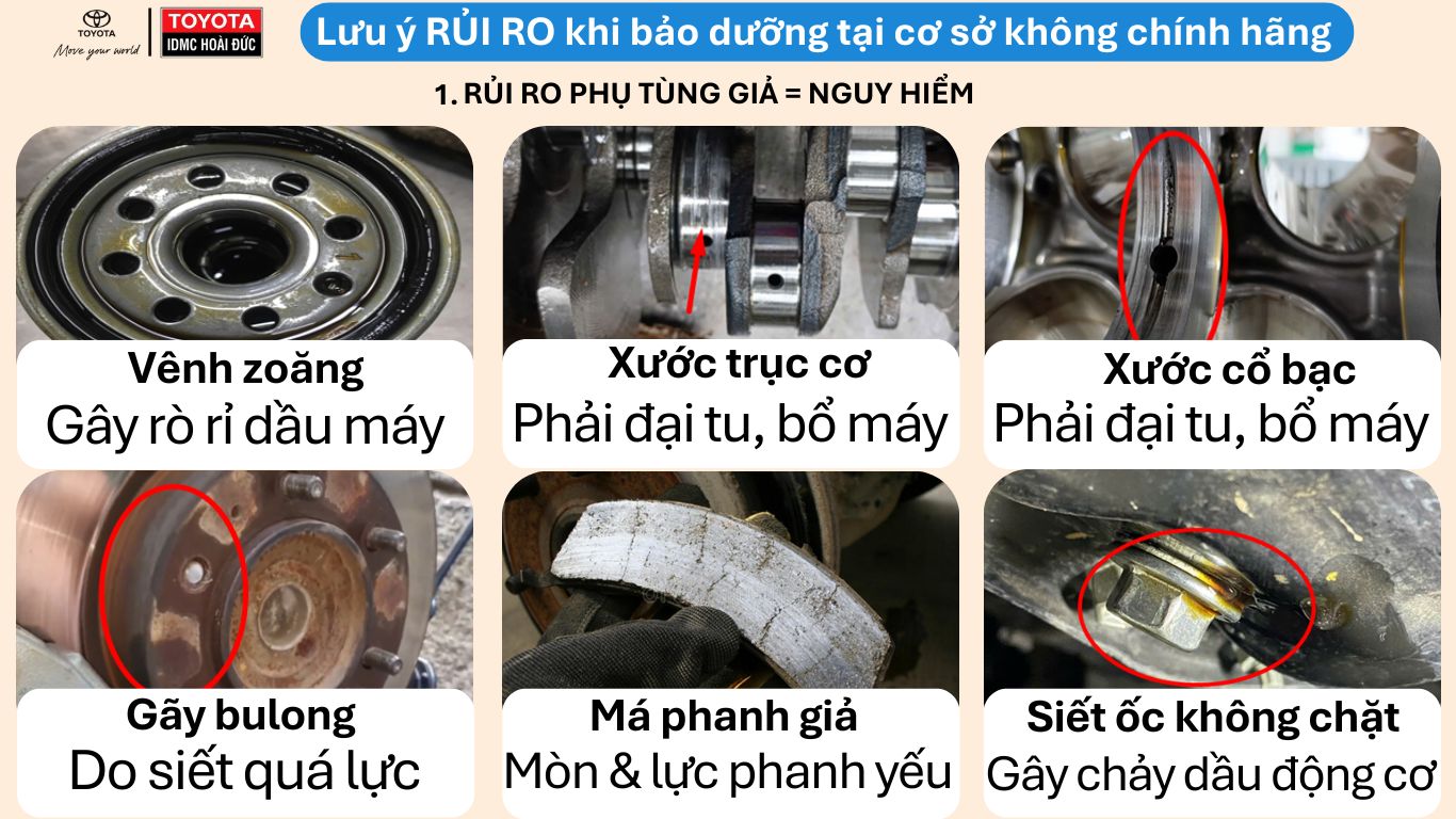 LƯU Ý RỦI RO KHI BẢO DƯỠNG TẠI CƠ SỞ KHÔNG CHÍNH HÃNG