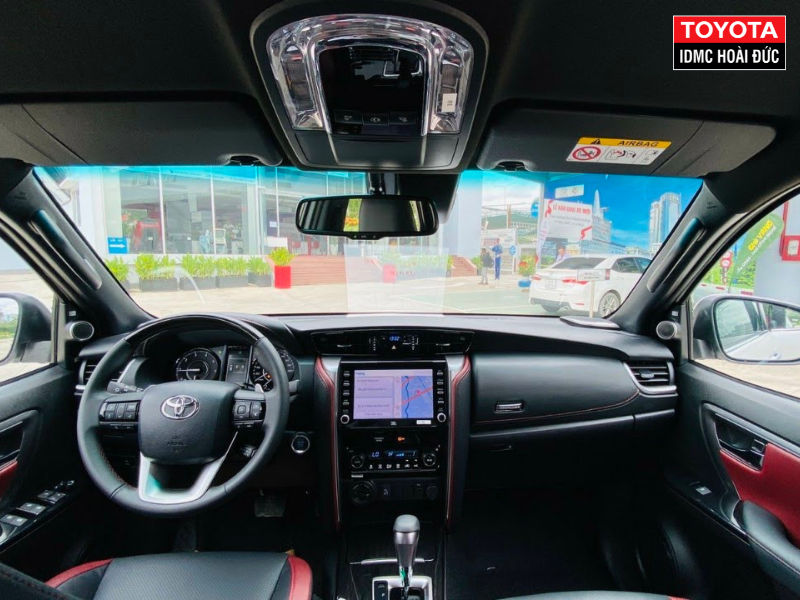 Toyota Fortuner Legender 2023 trang bị ghế ngồi bọc da màu đen kết hợp với các đường viền màu đỏ, giúp tổng thể nội thất của mẫu SUV gầm cao này trở nên trẻ trung và sang trọng hơn rất nhiều.