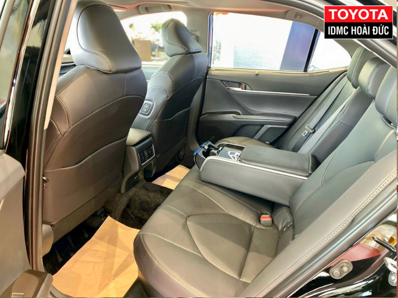 Hàng ghế sau xe Toyota Camry 2.5HV có chỗ để chân rất thoải mái, đi kèm còn có tính năng ngả lưng chỉnh điện, bảng điều khiển ở tựa tay. Nhằm giúp hành khách thoải mái khi đi xa, hàng ghế sau còn được tích hợp rèm che nắng chỉnh điện.
