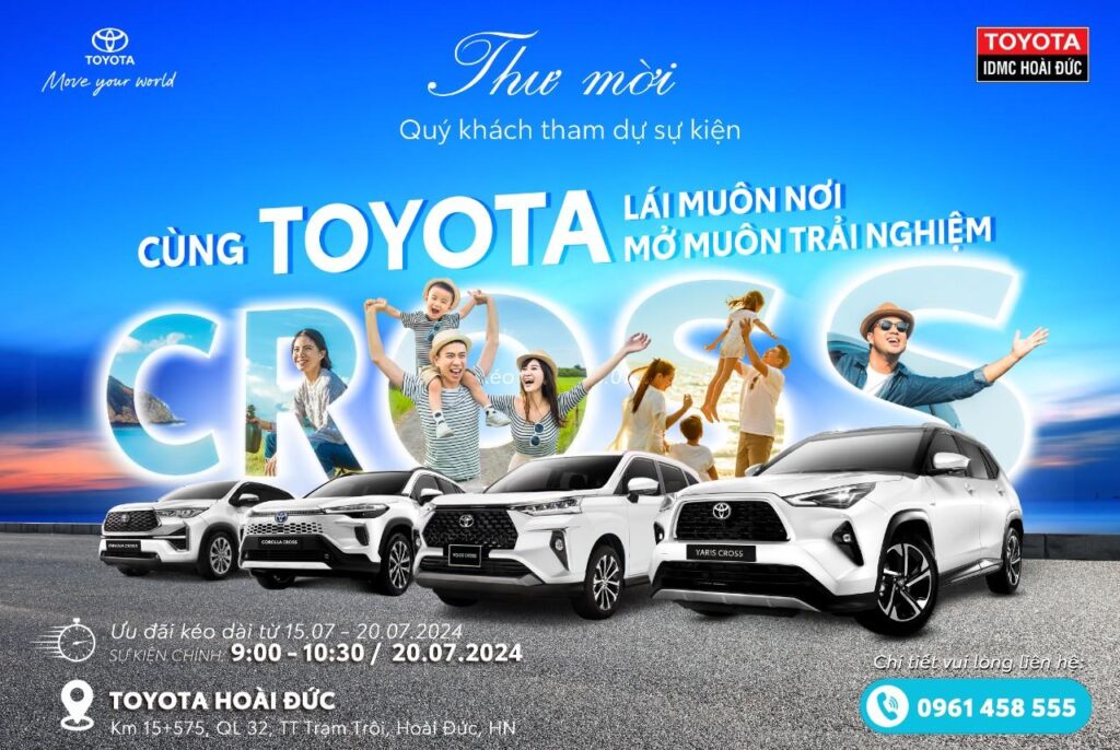 Thời gian (sự kiện chính): 9h00 – 10h30, Thứ 7, ngày 20/07/2024 Địa điểm: Showroom Toyota Hoài Đức , Km