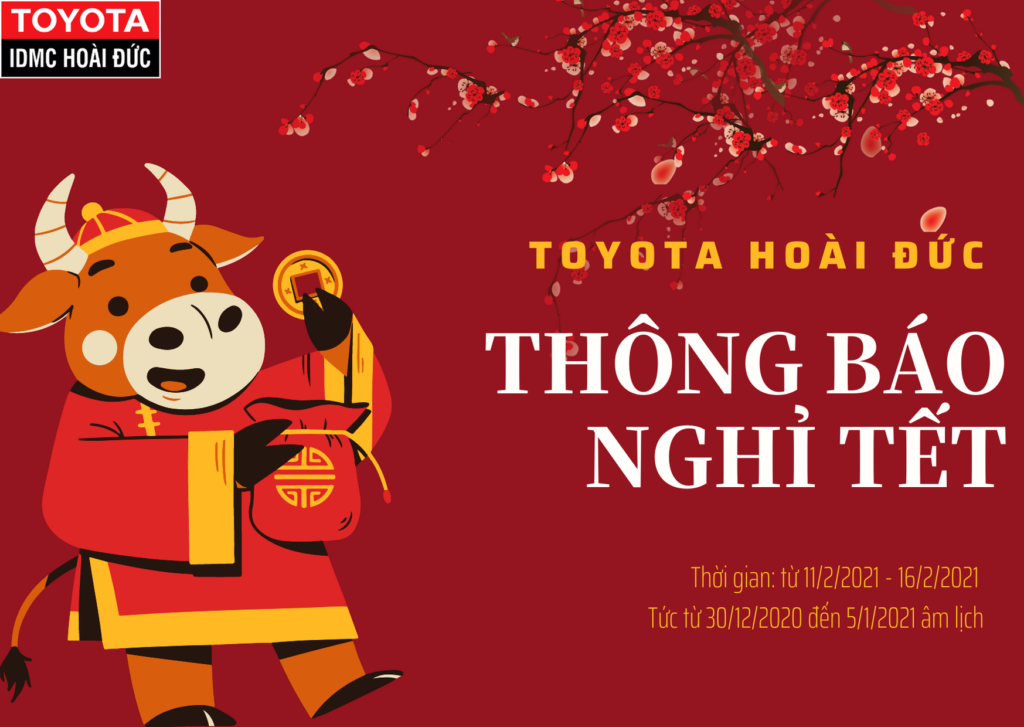 Kính gửi quý khách hàng! Toyota Hoài Đức xin THÔNG BÁO: NGHỈ TẾT NGUYÊN ĐÁN 2021 như sau: – Toàn