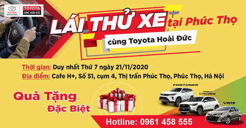 LÁI THỬ XE TẠI PHÚC THỌ CÙNG TOYOTA HOÀI ĐỨC NHẬN NGAY QUÀ TẶNG ĐẶC BIỆT KHI TRẢI NGHIỆM CÁC DÒNG
