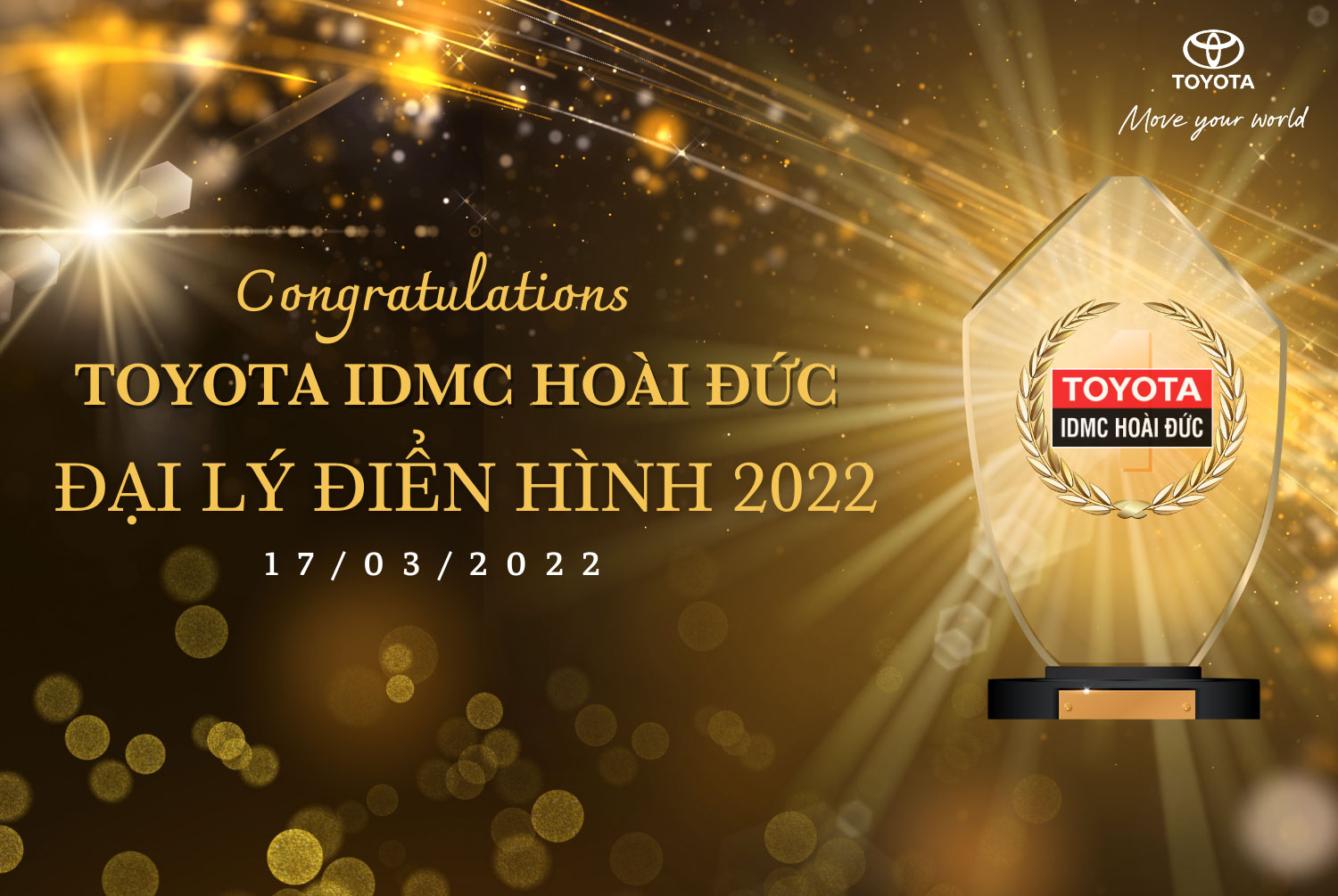 Toyota IDMC Hoài Đức chân thành cảm ơn sự đồng hành và ủng hộ của Khách hàng, sự nỗ lực của toàn thể Toyota IDMC Hoài Đức. Giải thưởng này sẽ là động lực để thương hiệu Toyota IDMC Hoài Đức tiếp tục vươn xa hơn, chinh phục những cột mốc, đạt được những thành tựu mới trong năm 2023.