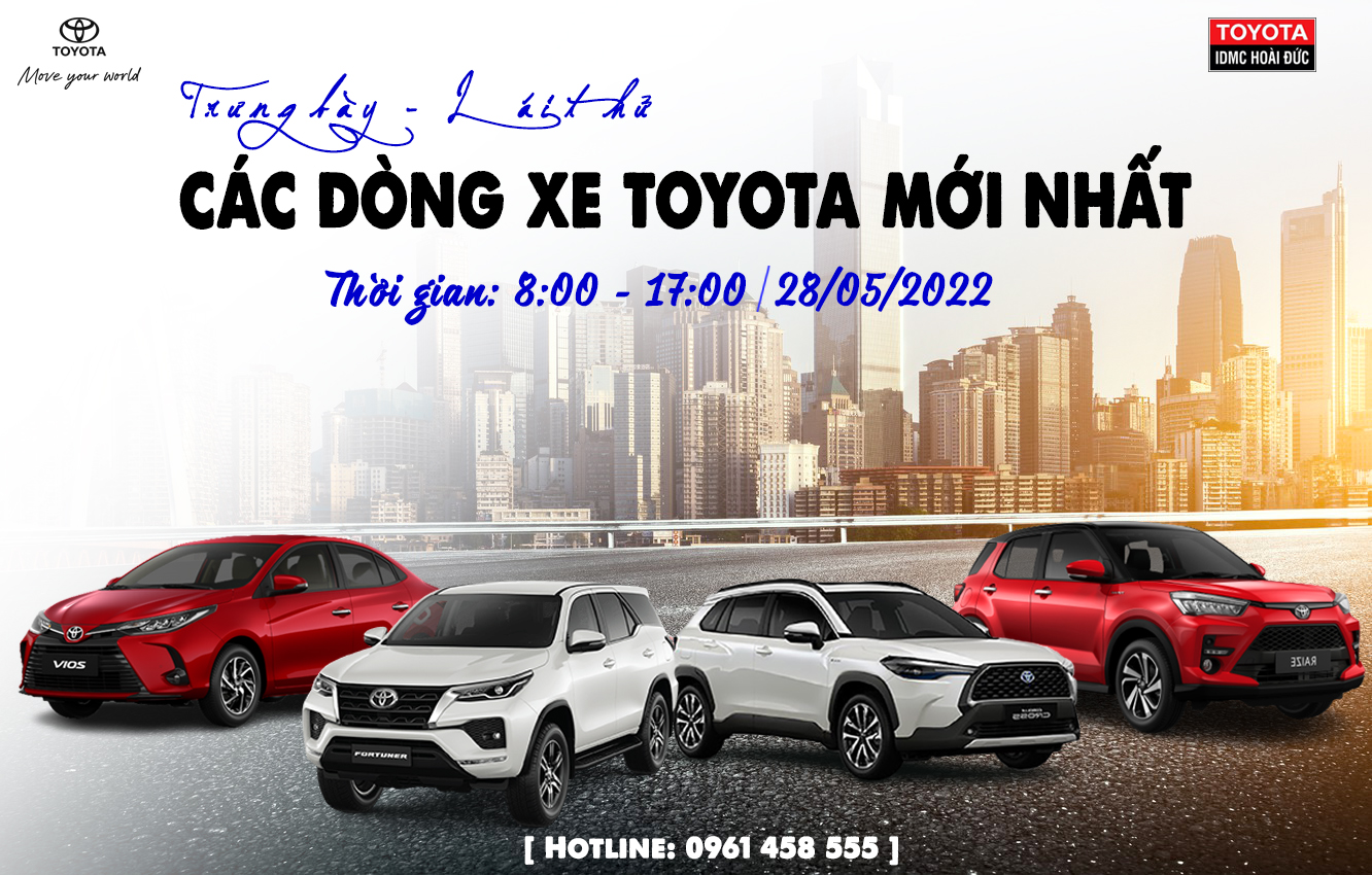 Với mong muốn đem đến cho quý khách hàng những trải nghiệm chân thực, cùng ưu đãi hấp dẫn nhất khi mua xe, Toyota Hoài Đức tổ chức chương trình TRƯNG BÀY & LÁI THỬ XE TOYOTA TẠI HOÀI ĐỨC MỚI NHẤT với các dòng xe mới nhất, hot nhất tại Toyota Hoài Đức.