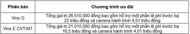 Theo chính sách từ Toyota Việt Nam, từ ngày 01/9/2021 đến hết ngày 30/9/2021, Toyota Hoài Đức triển khai chương trình “An tâm ở nhà, nhận quà ưu đãi” cho Vios lên đến 26,5 triệu đồng. Ưu đãi mua VIOS tháng 8 lên đến 26.5 triệu đồng dành cho khách hàng ký hợp đồng và thanh toán đầy đủ đối với Toyota Vios cụ thể như sau: